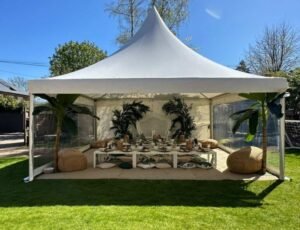 Tent World Pagoda Tents can accommodate a seating capacity between 50 and 1500 seats. We have a wide range of frame tents which includes, but not limited to, aluminium frame tents and world class marquee tents. We can also custom make your ideal size tent upon request.